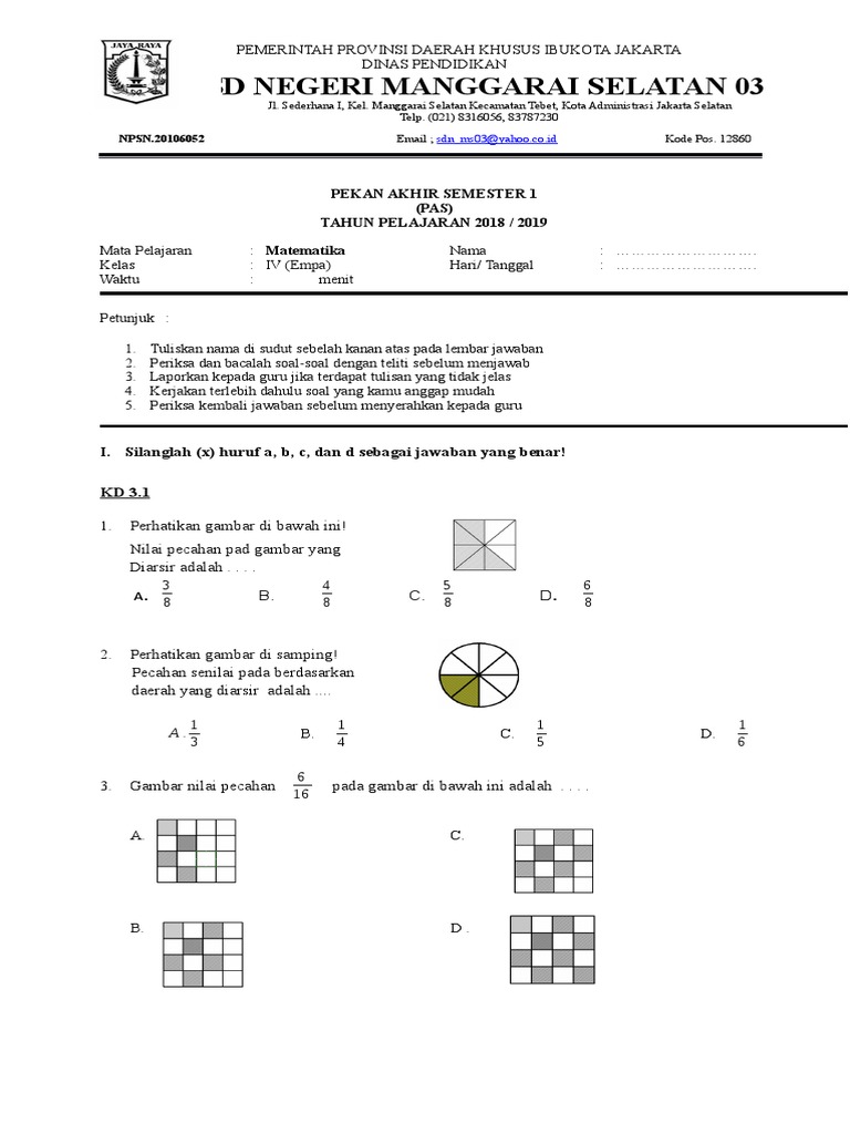 Pengenalan konsep pecahan diberikan saat siswa masih kelas 3. Semacam dikenal, bila mata pelajaran matematika memanglah sangat berarti untuk anak supaya pandai dalam berhitung dan logika dasar angka. Iv (empat) semester i (satu) disusun oleh : Tulislah pecahan senilai dari :.soal uts matematika kelas 4 sd semester genap. Contoh soal matematika kelas 4 sd tentang pecahan senilai, kali ini kami akan bagikan kumpulan latihan soal pelajaran matematika untuk kelas 4 sd pada semester 1 tentang pecahan senilai.